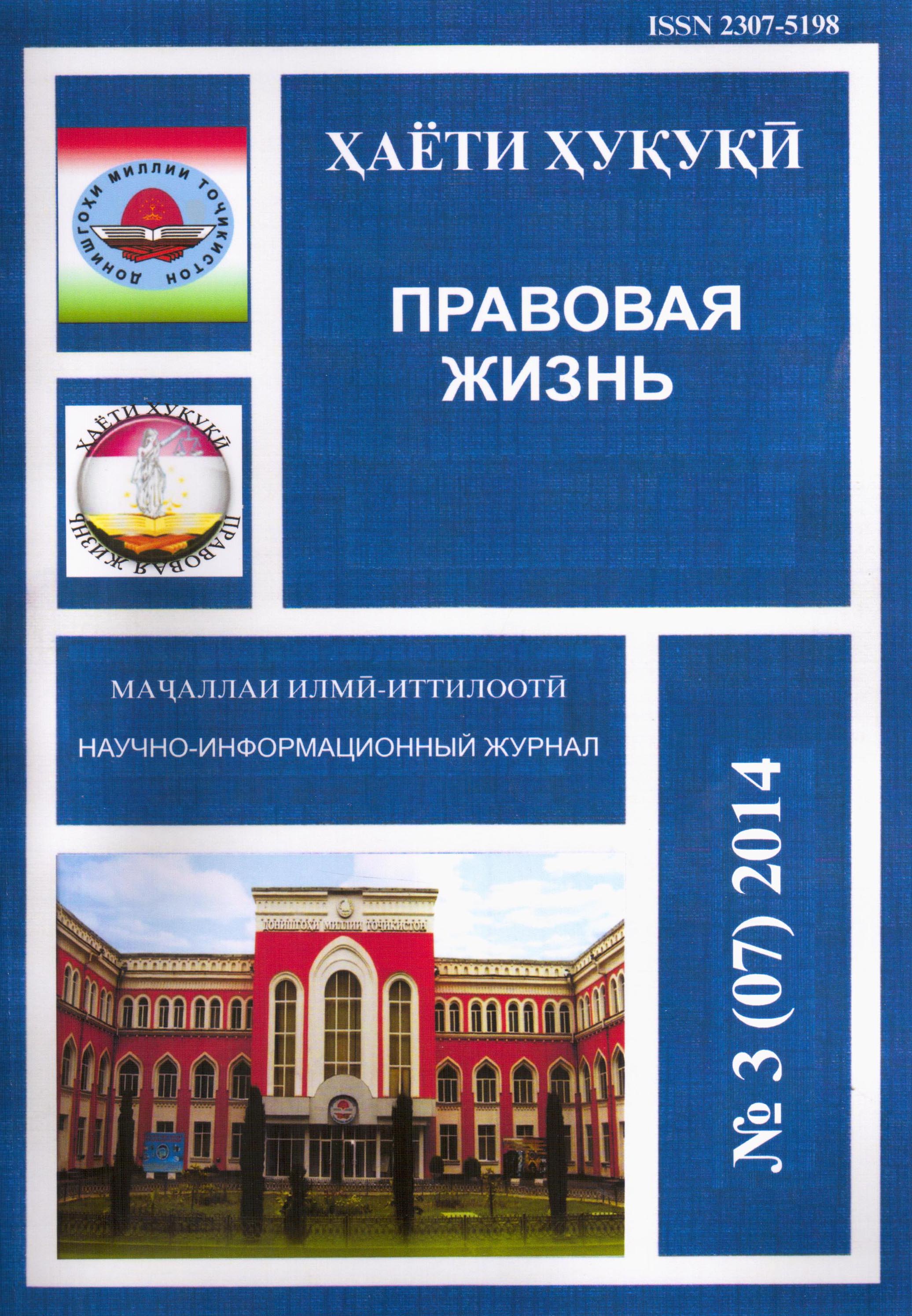 Редакционная коллегия: Тахиров Ф.Т. - Академик АН РТ, доктор юридических наук, профессор; Махмудзода М.А. - Академик АН РТ, доктор юридических наук, профессор; Малько А.В. - доктор юридических наук, профессор (РФ); Муртазакулов Дж.С. - доктор юридических наук, профессор; Сотиволдиев Р.Ш. - доктор юридических наук, профессор; Шарипов Т.Ш. - доктор юридических наук, профессор; Насриддинзода Э.С. - доктор юридических наук, профессор; Золотухин А.В. - доктор юридических наук, доцент; Рахмон Д.С. - кандидат юридических наук, доцент; Раджабов М.Н. - кандидат юридических наук, доцент.